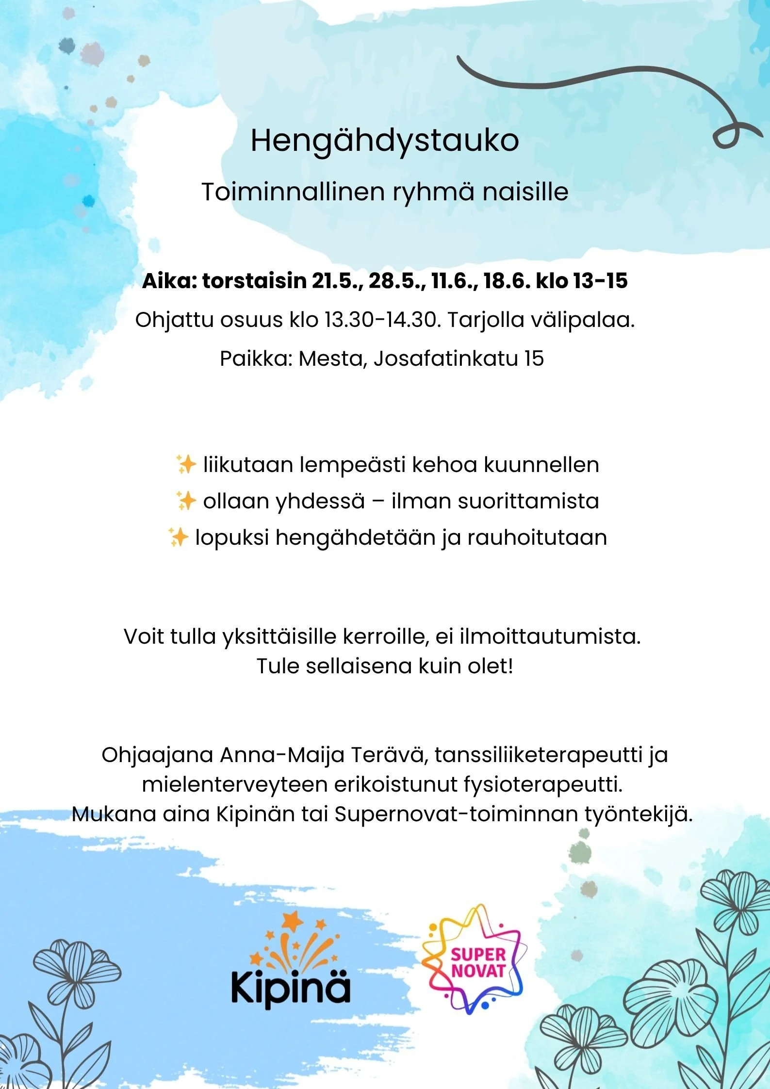 Supernovat-toiminta mukana Hengähdystauko-projektissa!